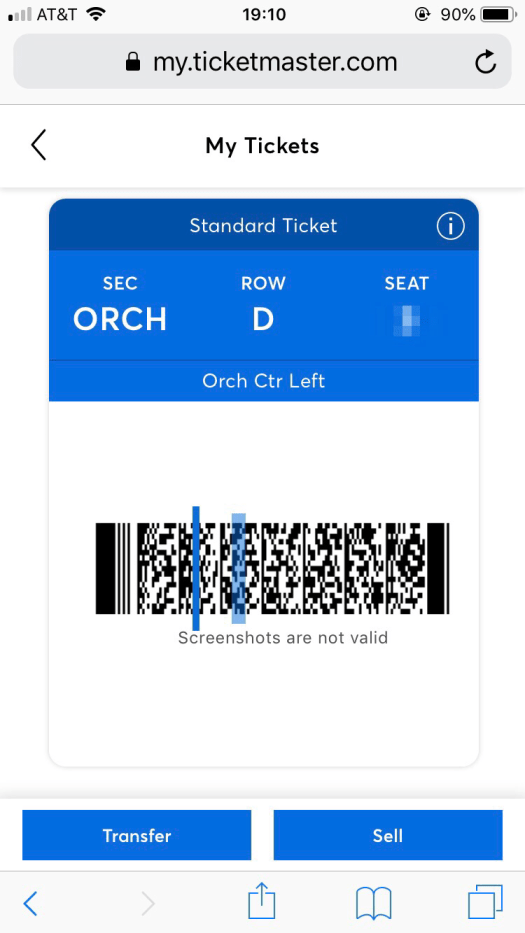 チケットマスターUSAでは、電子チケットでの入場となっており、スマホ画面の場コード読み込みで、入場できます。